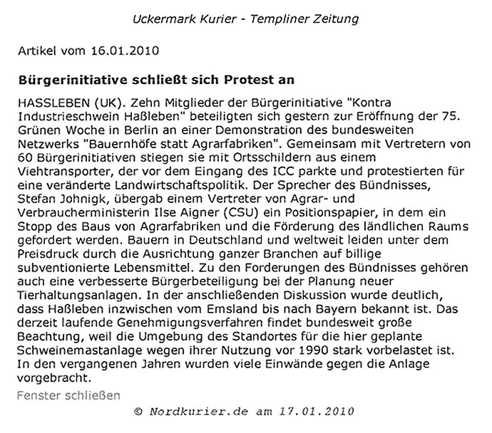 "Bauernhöfe statt Agrarfabriken Berlin-Brandenburg" ( BI Kontraindustrieschwein Haßleben) |